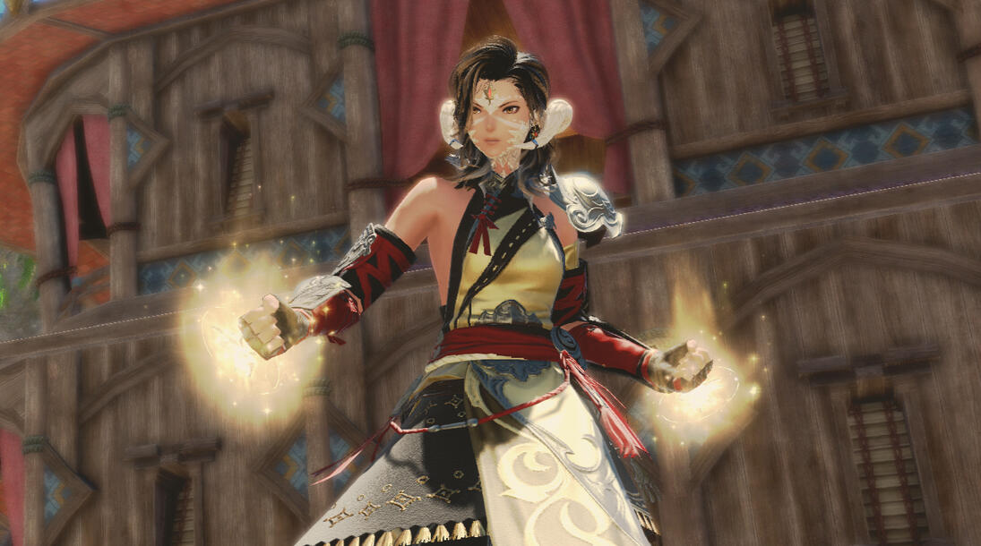 ᯽ Notable Features: Jeweled Star of Nezha on forehead that color shifts to match her Aether (gift from Lyse), Numerous faded scars on knuckles, forearms, & shins (usually covered by armor), Warpaint facial tattoos from her time working Ul'dahn clubs.